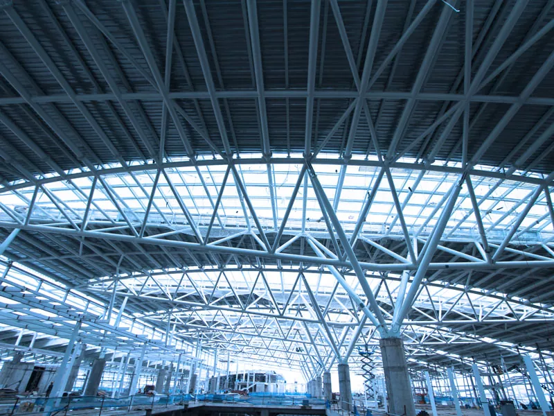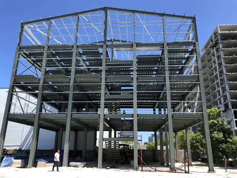 3. Steel Structure Fabrication Steel အစိတ်အပိုင်းများကို beams, columns, braces, and roof trusses များ အပါအဝင် အရည်အသွေးမြင့် သံမဏိကို အသုံးပြု၍ စက်ရုံတွင် ကြိုတင်ပြင်ဆင်ထားပါသည်။ တိကျသော အင်ဂျင်နီယာသည် တပ်ဆင်နေစဉ်အတွင်း ဤအစိတ်အပိုင်းများကို တိကျစွာနှင့် လုံခြုံစွာ လိုက်ဖက်ကြောင်း သေချာစေသည်။